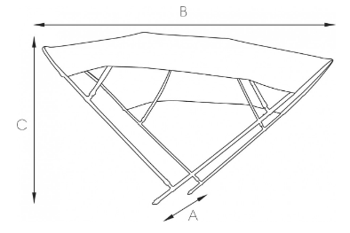Zonnetent model Biminox, 170x200x140cm, zwart; RVS-Beugels